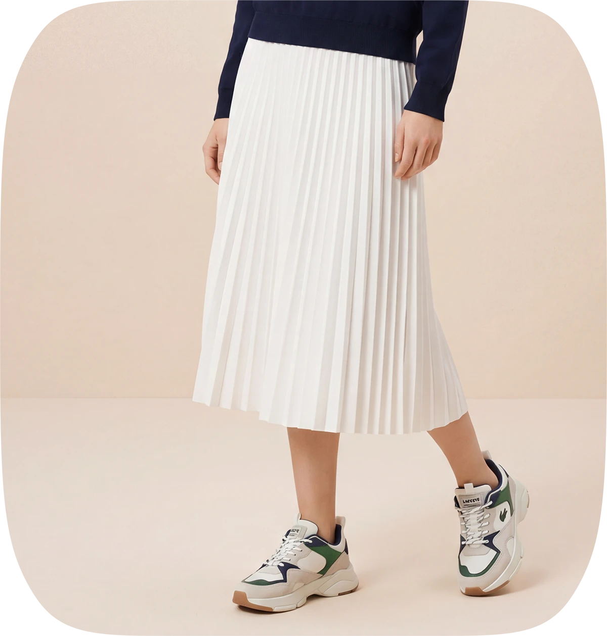 We train a new model on top of the backbone — a brand-exclusive AI that reproduces your products and aesthetics with stitch-level accuracy. The result: images that look and feel like your brand, not a generic template.